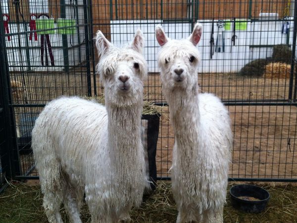 Photo: Two of our prize winning suri alpacas (Samson and Hercules) in full fleece